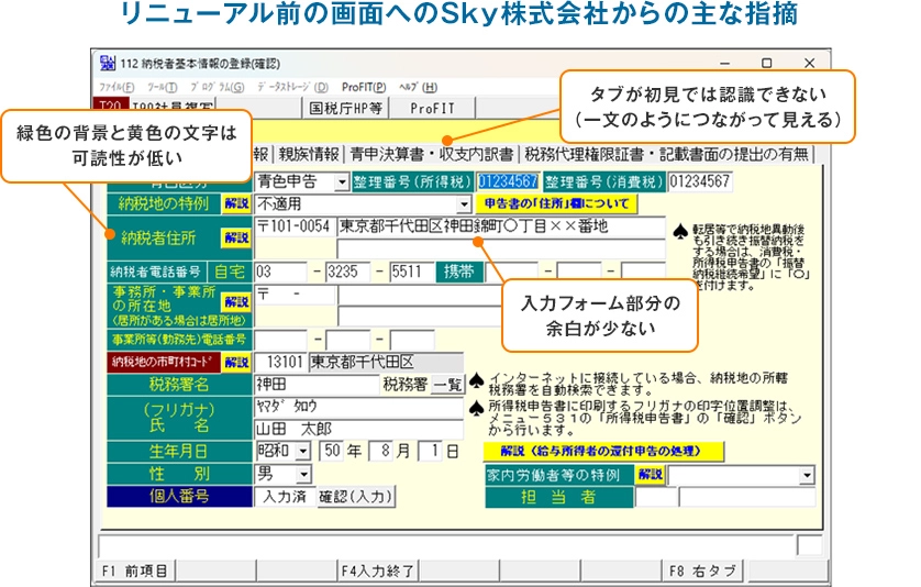 また、今回の画面デザインリニューアルでは、画面遷移や画面に表示される情報の変更までは踏み込んでいません。私たちが開発するシステムは、税制改正後、短期間でリリースし、申告期限に間に合うよう活用いただくという流れですので、画面を大きく変更するとユーザーが操作に迷い、期限がシビアな申告業務に影響が出る恐れがあります。ユーザーを混乱させないことを第一に考えました。