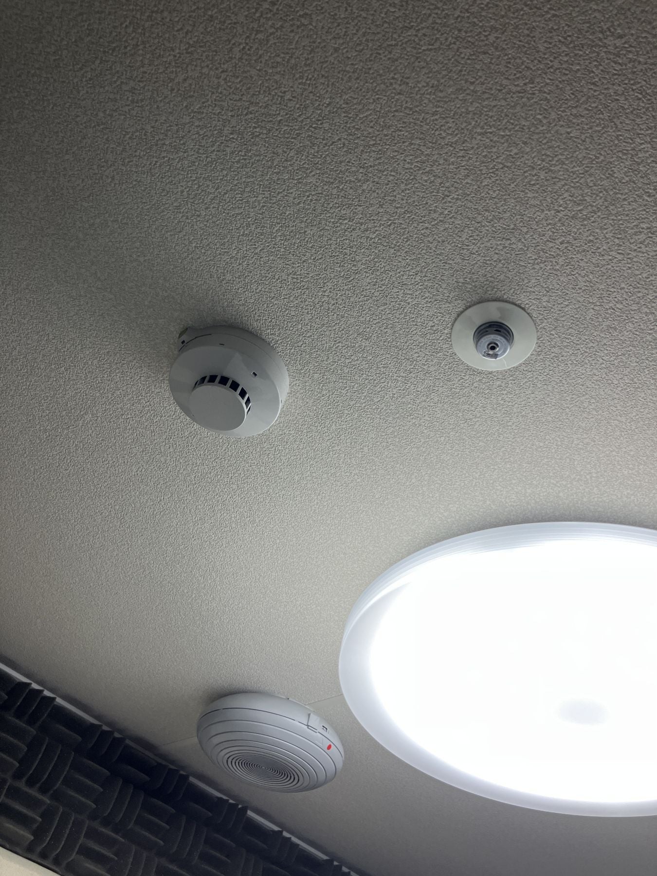 消防法に基づき、「防音室内外にスプリンクラー」「自動火災報知設備」「非常スピーカー」などの消防設備を設置しました。