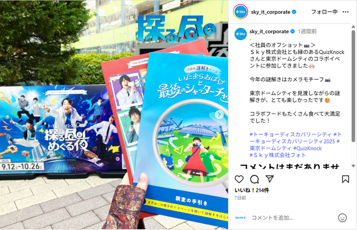 Sky株式会社の公式Instagramでは、ほかにもさまざまなオフショットやキャンペーンの開催、会社の最新情報なども発信中です!ぜひご覧ください✨