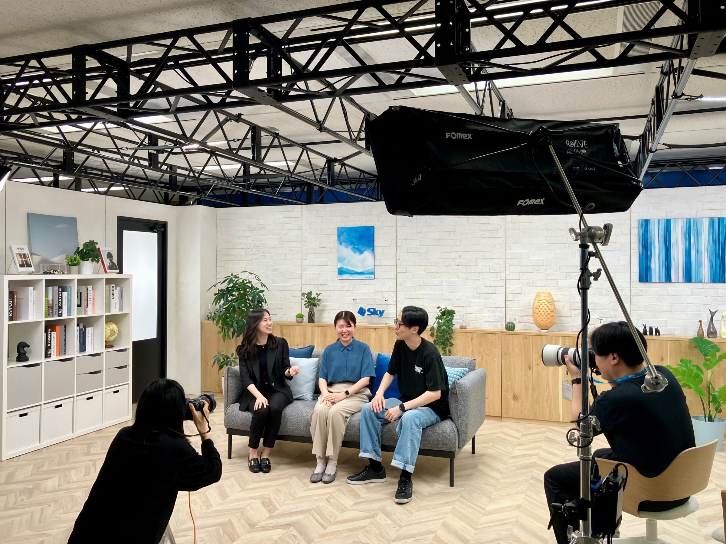 皆さん、こんにちは。私はSky株式会社のライターです。今回は、Sky株式会社の新卒採用サイトでご紹介している、活躍する社員によるクロストークの取材の裏側についてご紹介します。クロストークでは、現役社員たちに仕事の内容や職場環境についてインタビューし、対話形式で読みやすい記事を提供しています。特に「若手のホンネ座談会」では、入社2年目の社員たちがリアルな職場体験を語り合い、その取材の様子や撮影風景、研修を通じた同期との絆について詳しくお伝えします。