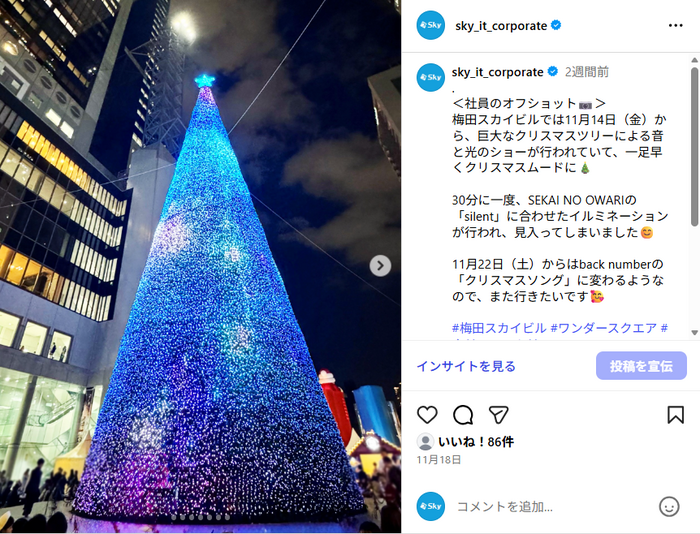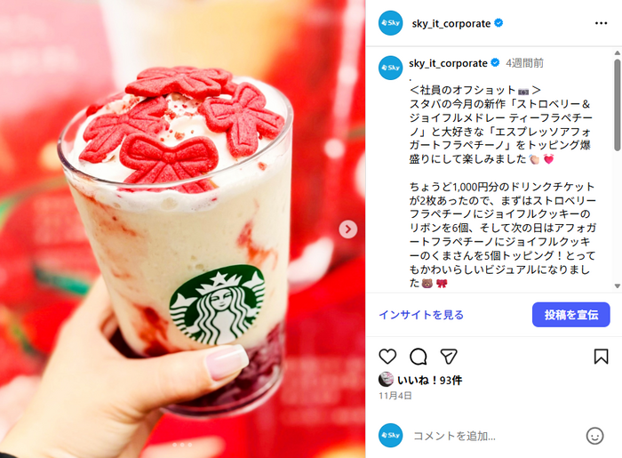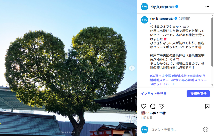 皆さん、こんにちは! InstagramのSky株式会社 公式アカウントでは、日々「社員のオフショット」を投稿しています☺社員がお休みの日に行ったお出かけスポットや購入品など、さまざまな一面を垣間見ることができ、Instagramを運営している私(中の人)も、行ってみたい!買ってみたい!と思うことがあります。
