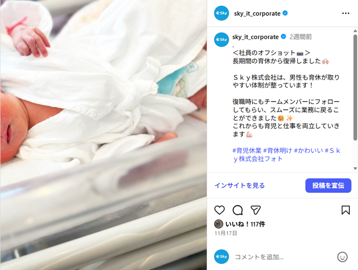 InstagramのSky株式会社 公式アカウントでは、ほかにもさまざまなオフショットやキャンペーンの開催、会社の最新情報なども発信中です!ぜひご覧ください✨