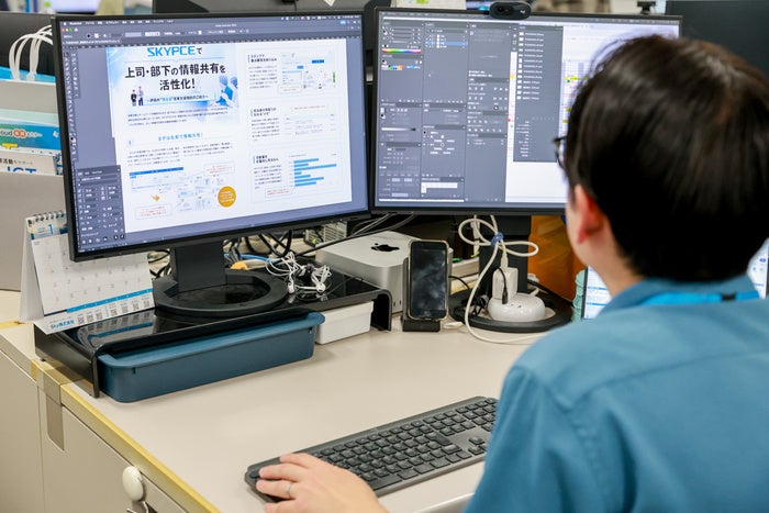こちらの写真は、デザイナーが誌面レイアウトを進めている様子。細部までこだわりながら、読者の皆さまにとって読みやすい誌面づくりを心がけています。