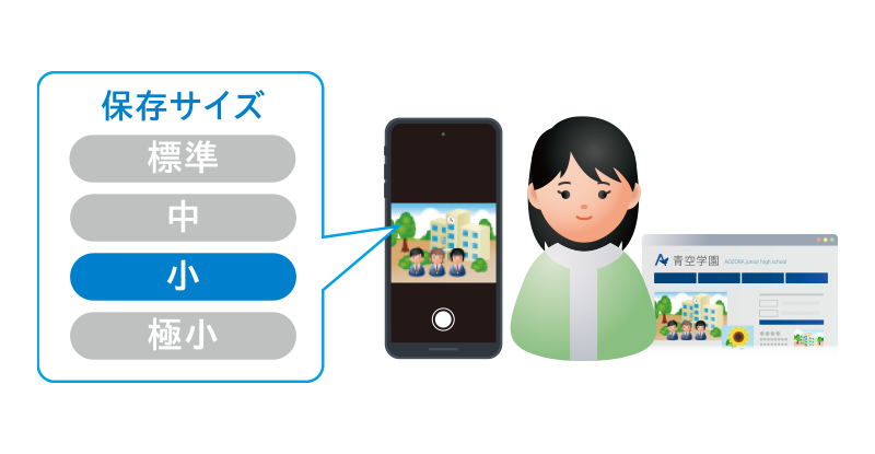 また、学校のWebサイトへの使用や学級だよりへの掲載などを想定し、個人を特定できないように、事前に画質を下げて撮影・保存することもできます。「セーフカメラ」は、このような教育現場に寄り添う設計で、子どもたちの安全をしっかり守る運用をサポートします。