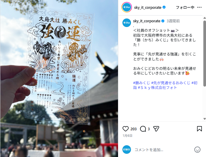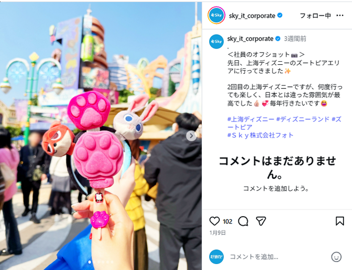 皆さん、こんにちは! InstagramのSky株式会社 公式アカウントでは、日々「社員のオフショット」を投稿しています☺社員がお休みの日に行ったお出かけスポットや購入品など、さまざまな一面を垣間見ることができ、Instagramを運営している私(中の人)も、行ってみたい!買ってみたい!と思うことがあります。