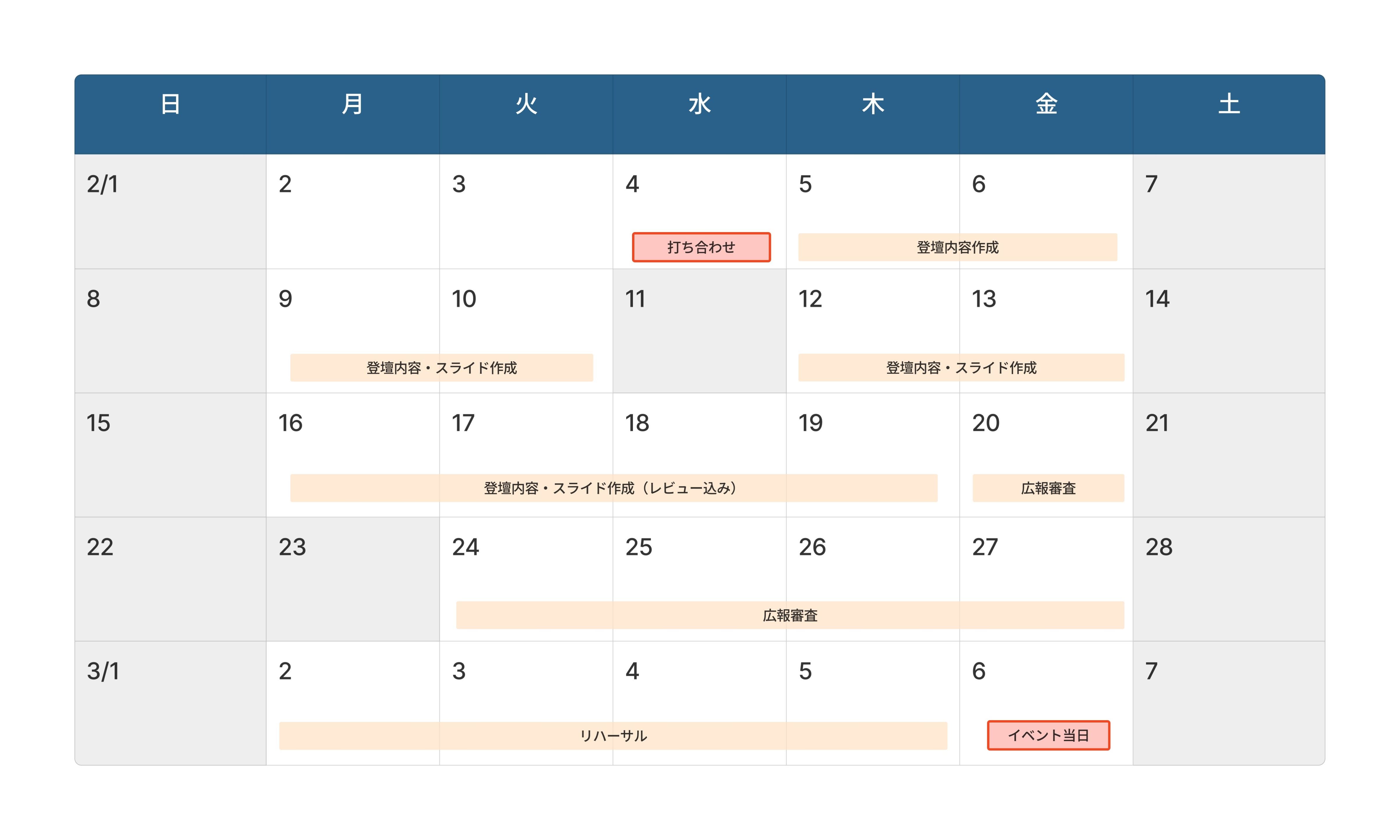 具体的な準備スケジュール