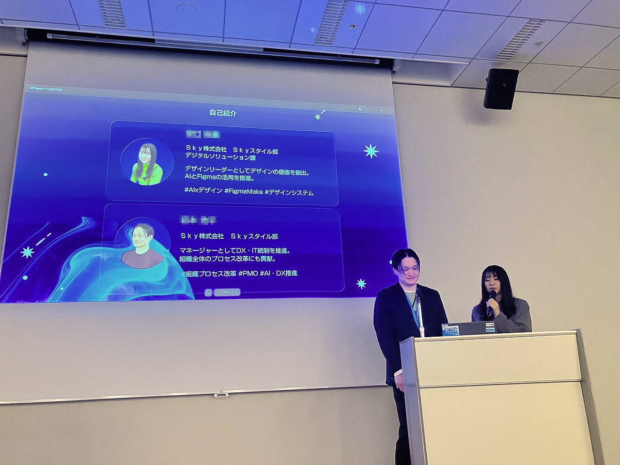 会場となったグランフロント大阪には、約100名ものデザイナーや開発者の方々が集まっていました。Sky株式会社としてFigmaイベントに登壇するのは今回が初めて。そして、私自身にとっても、これほど大きな舞台での登壇は初めての経験でした。