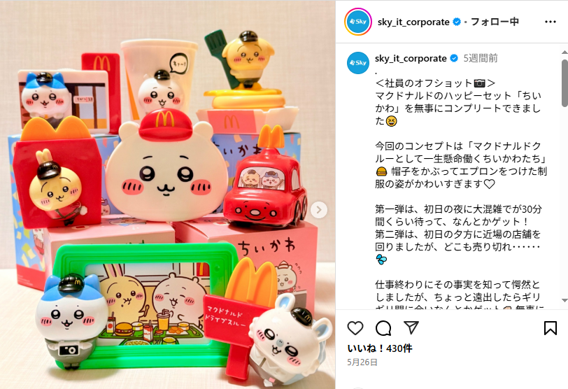Sky株式会社の公式Instagramでは、ほかにもさまざまなオフショットやキャンペーンの開催、会社の最新情報なども発信中です!ぜひご覧ください✨