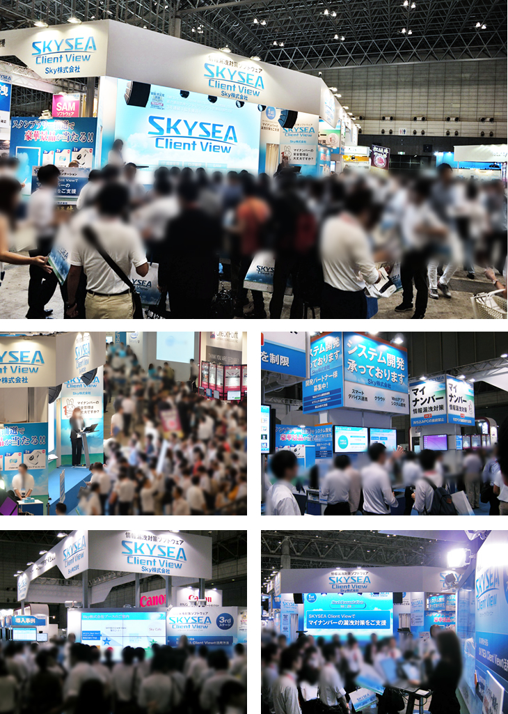 Skyブースでは、「SKYSEA Client View」のご紹介はもちろんのこと、「業務系システム開発」に関するコーナーも設けております。