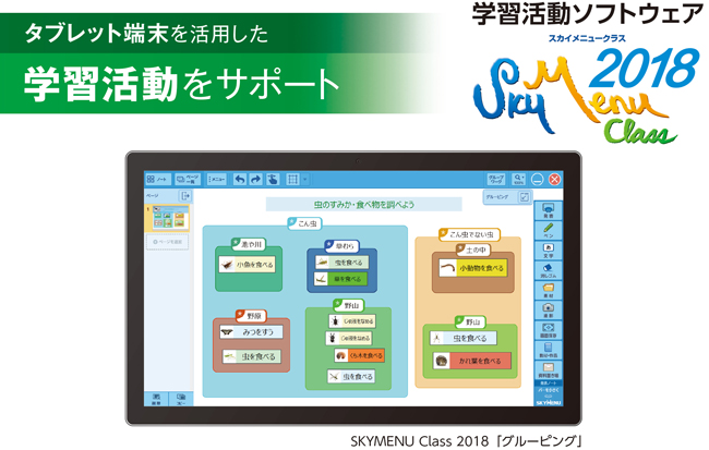 Sky株式会社は、タブレット端末に対応した学習活動ソフトウェア「SKYMENU Class 2018」(スカイメニュークラス 2018)を開発、6月に販売を開始する予定です。