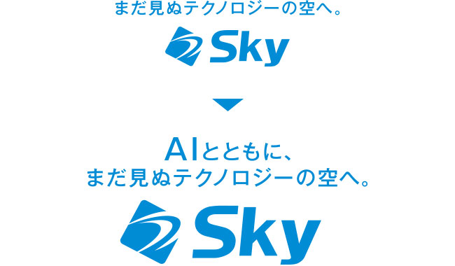 Sky株式会社は、コーポレートメッセージ(タグライン)を、従来の「まだ見ぬテクノロジーの空へ。」から「AIとともに、まだ見ぬテクノロジーの空へ。」に変更いたしました。