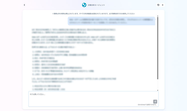 提出済みの日報を解析したり、PCでの作業ログを分析したりするといった、目的別のAIエージェントを順次リリースしています。自分自身やチームメンバーの業務など、活動状況を可視化することでDX推進に役立てています。