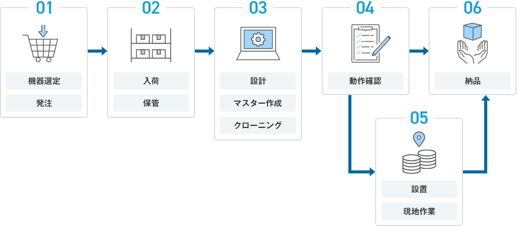 機器に設定する項目やインストールするアプリケーションをお客様に事前にヒアリングした上で、適切な設計を行います。