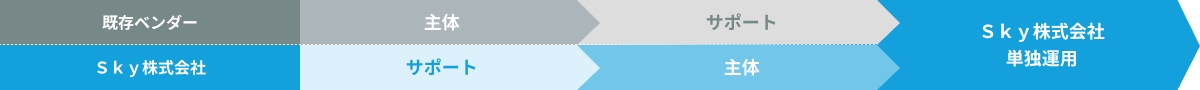 導入ベンダーから業務引き継ぎを行い、移行期間を設けた上でサービス提供を行います。