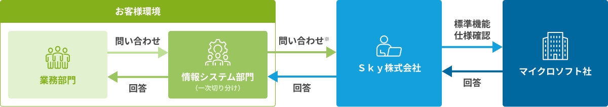 Microsoft Dynamics 365の導入経験を持つエンジニアが問い合わせに迅速に対応し、貴社内でのナレッジを蓄積します。