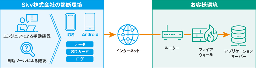 多くのスマートフォンアプリは「正常に動作すること」は保証されていますが、セキュリティ観点での検証が不十分なことから、実装した機能に脆弱性が混入していないか、設定ミスがないかなど、受け入れ検査を行う必要があります。外部に公開することが多いため、公開前の診断が重大事故の防止に有効です。