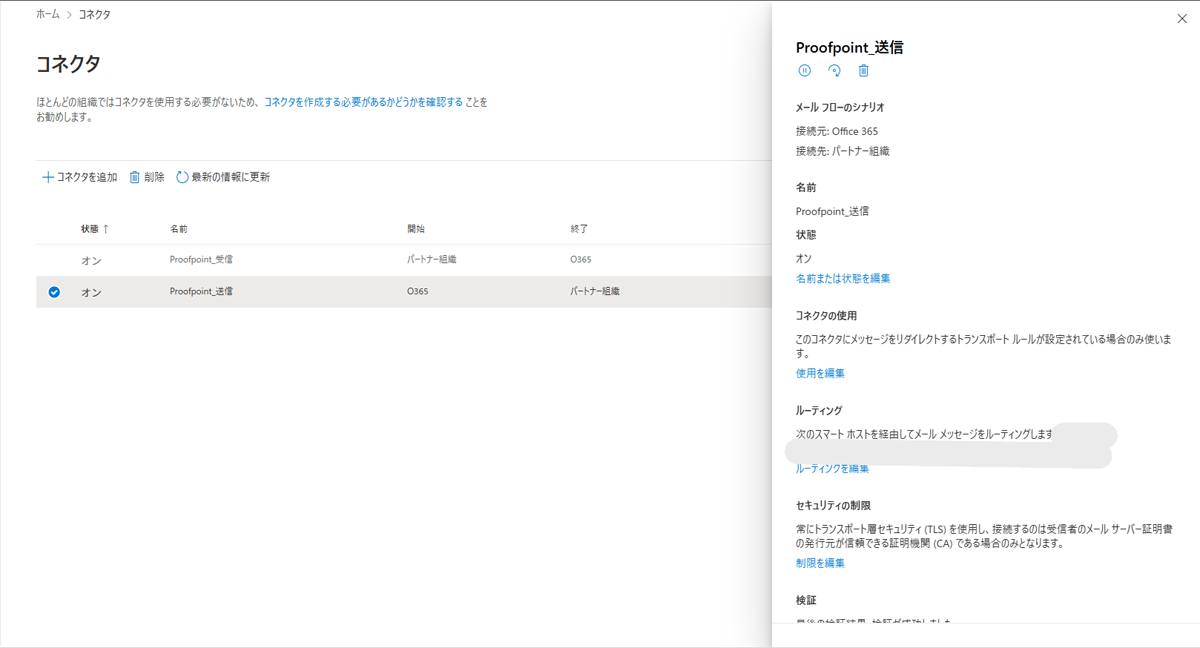 今回の場合、「test.com」宛てのメールはExchange Onlineに送信するといった内容になります。