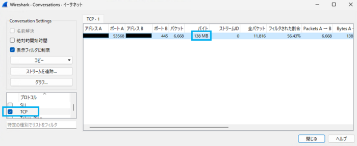 上記記事のフィルタの設定で絞った目的の通信の通信量がどの程度かを、Wiresharkを使って計測することができます。本記事ではその方法を紹介します。