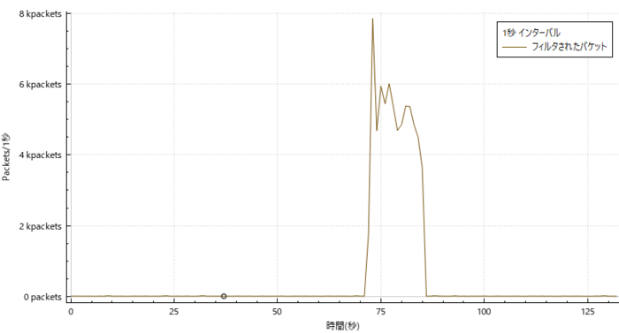 さらに時間当たりのパケット数についてグラフを表示することも可能です。