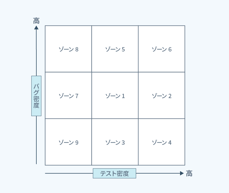 2つの指標を縦軸と横軸にし、それぞれの基準値や上限下限で区切ったグラフを作成し、そのグラフ上にプロジェクトの状況を当てはめていくことで、グラフに作成したゾーンのどの位置にあるかによって品質を客観的に評価・分析できるというものです。