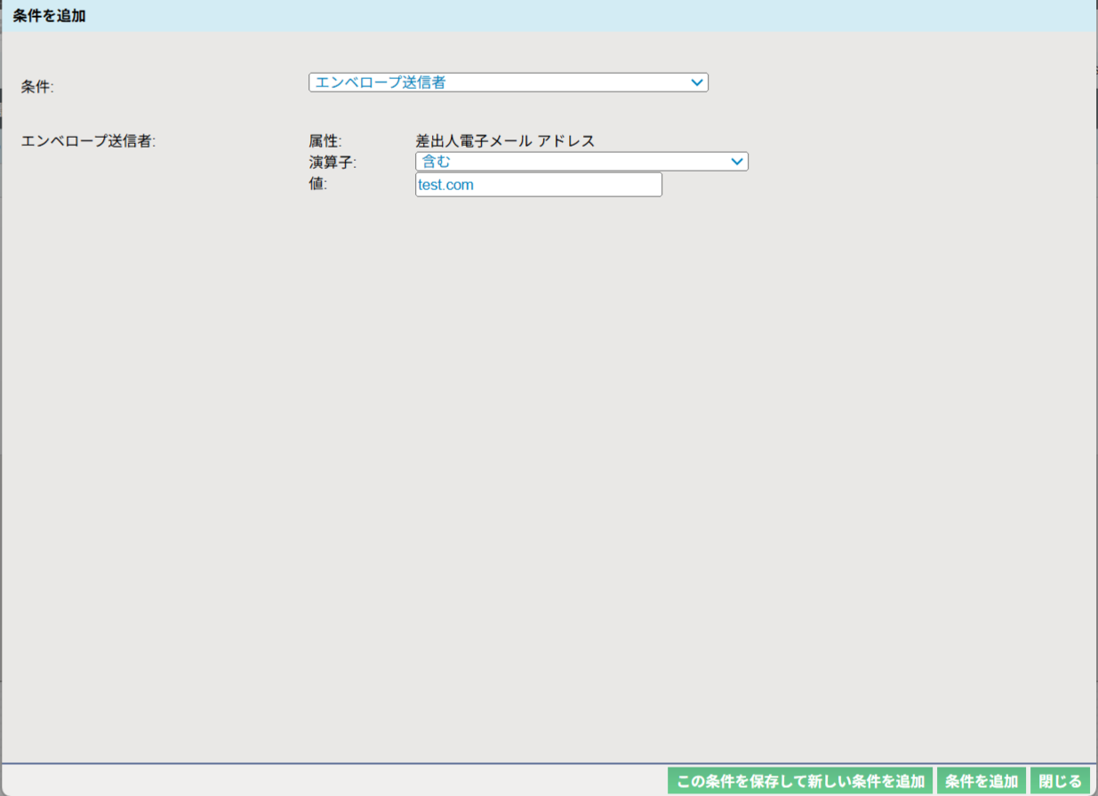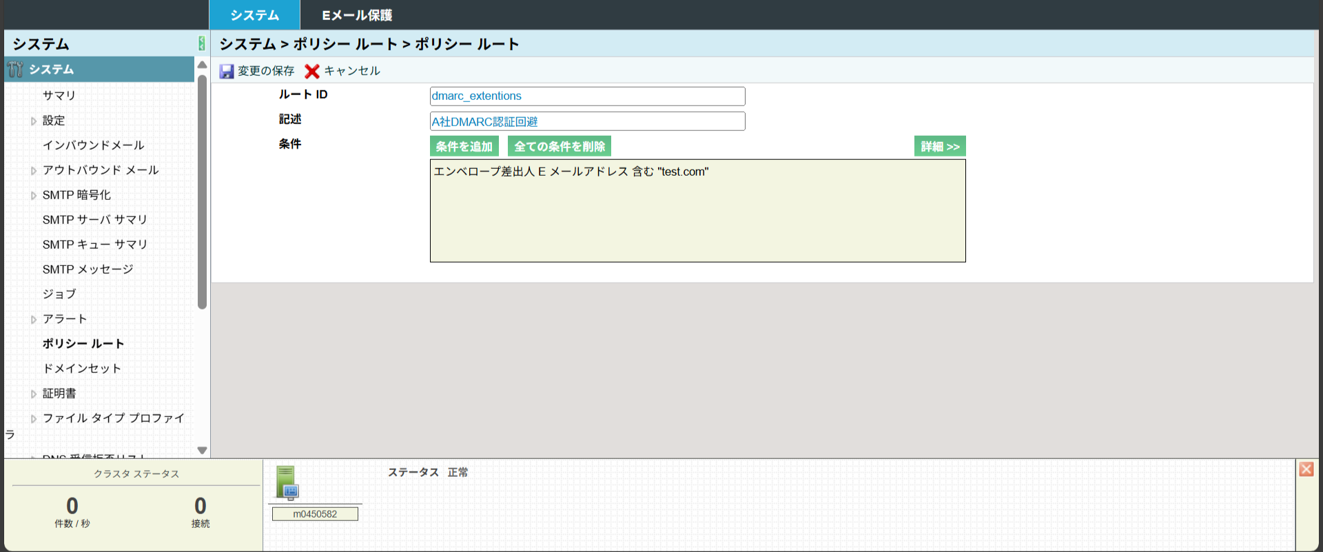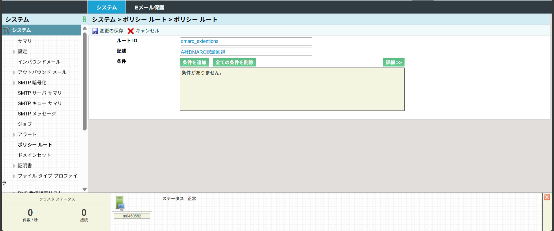 今回はDMARCを使用する想定なので、結果にかかわらず「メッセージの処理を続行」の設定にしています。ルールの追加や編集は環境に合わせて行ってください。