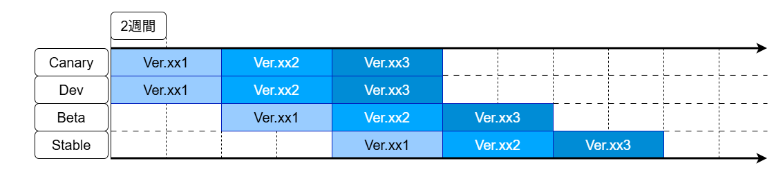 正式なチャンネル(Stable)が提供される前に、事前に提供されるチャンネルで検証を行うことで、事前に問題を検出し、対策を打ち出し、問題が表面化することを防ぐことができます。