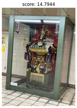 「ガラスに囲われている神輿」のような日本語クエリもテキストエンコーダに通し、対応するベクトルを得ます。