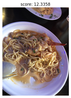 テキストベクトルと画像ベクトル群の類似度(内積)を計算し、スコアが高い画像を上位に表示すれば、自然言語による画像検索が成立します。