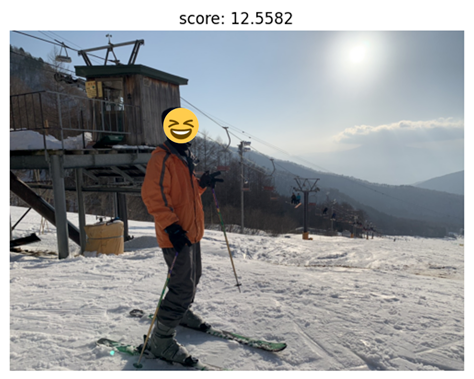 スキー場でピースしている写真がトップを獲得 し、モデルが複合的な条件をうまく捉えていることがうかがえました。