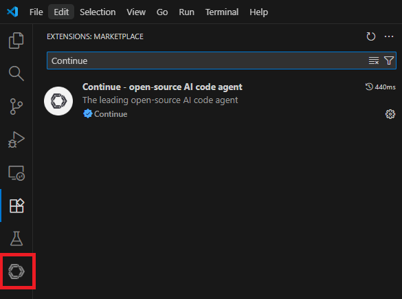 インストールが完了すると左端のメニューバーにContinueのアイコンが追加されます。