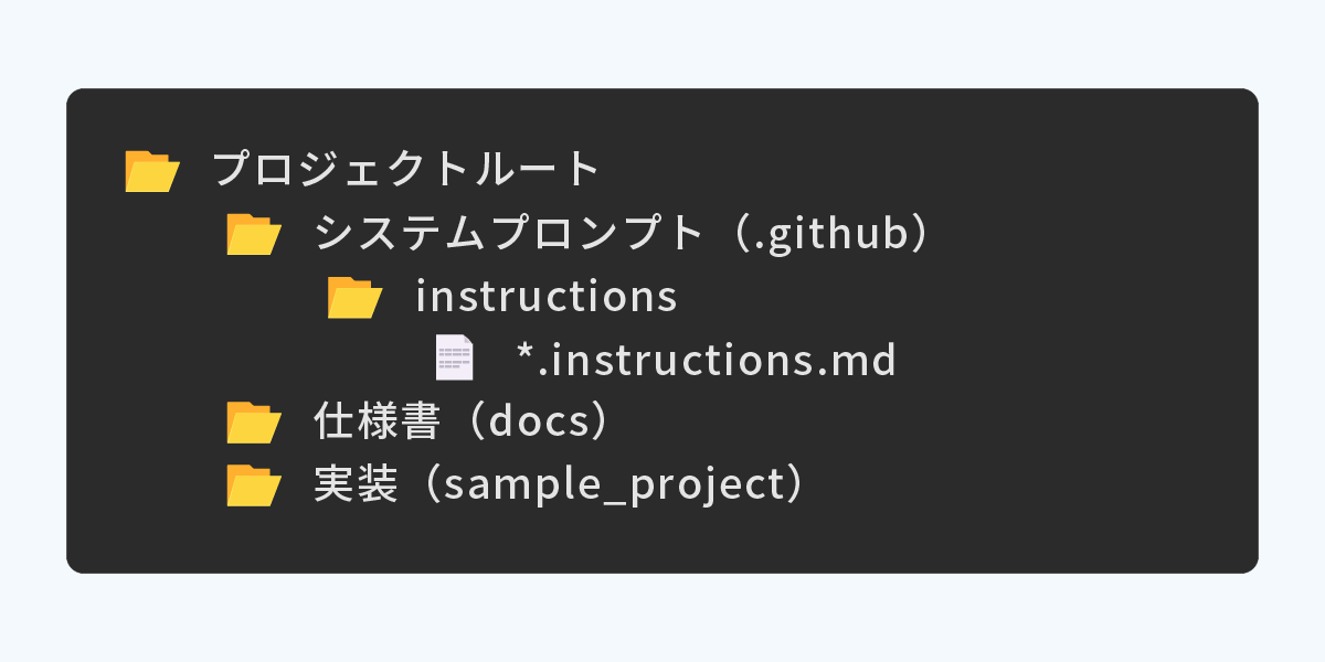 実装と仕様書とシステムプロンプトは以下のように配置します。