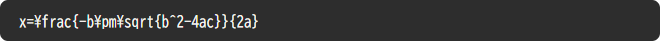 二次方程式の解の公式を例にとると、以下のような記述となります。
