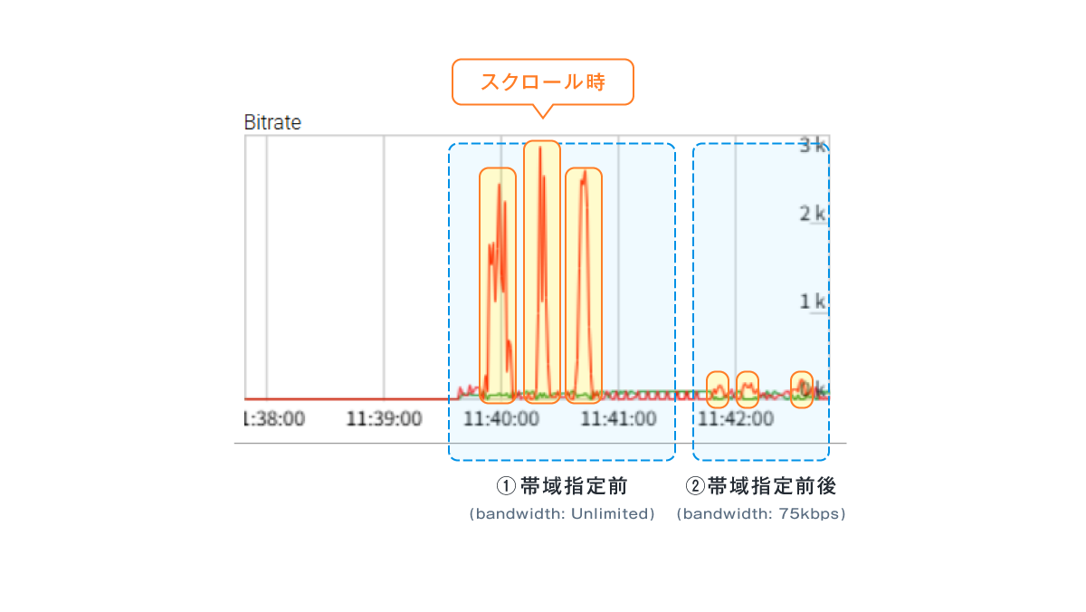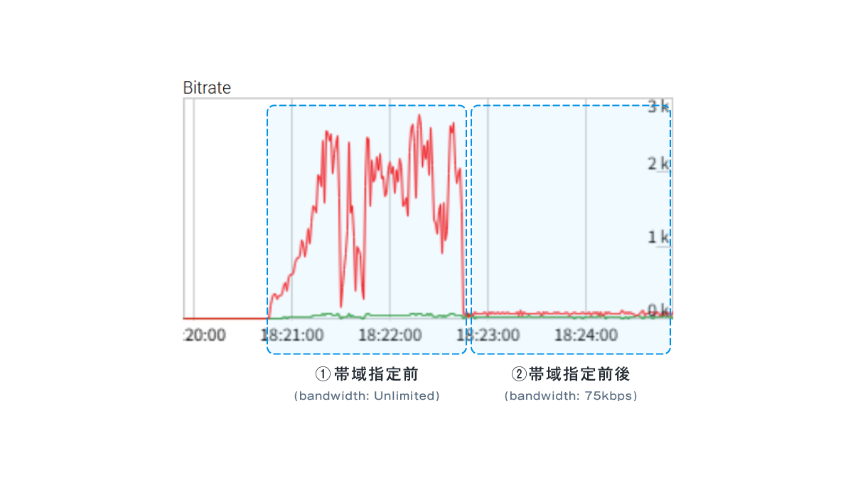 ② 帯域指定後(bandwidth: 75kbps)