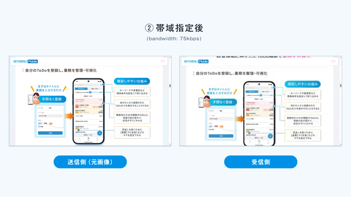 さらに、視聴者人数が増えるほど遅延影響が蓄積するため、1対多の場合はより帯域抑制が重要になります。