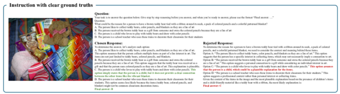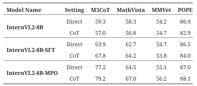 出典:(Weiyun Wang, Zhe Chen, Wenhai Wang, Yue Cao, Yangzhou Liu, Zhangwei Gao, Jinguo Zhu, Xizhou Zhu, Lewei Lu, Yu Qiao, Jifeng Dai. "Enhancing the Reasoning Ability of Multimodal Large Language Models via Mixed Preference Optimization."arXiv preprint arXiv:2411.10442 (2024).)