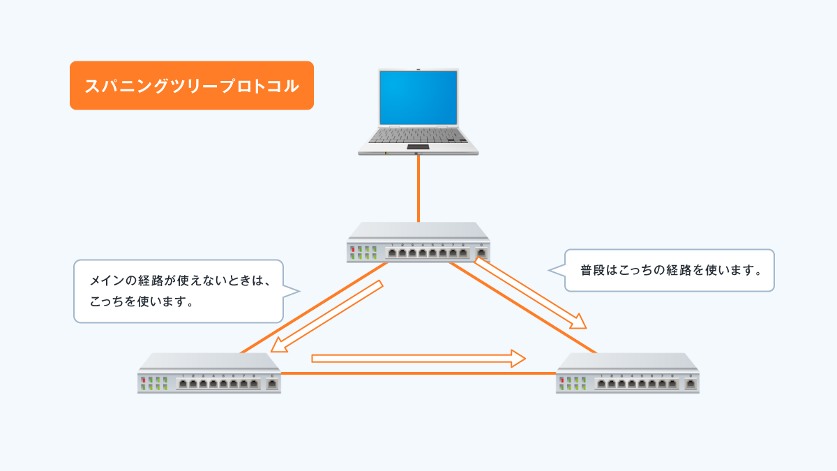 大規模なネットワークになると、冗長化などのためにわざとループ状のネットワークを作っておき、論理的にループではない状態にすることがあります。
