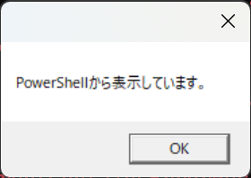 [System.Windows.Forms.MessageBox]::Show("PowerShellから表示しています。")